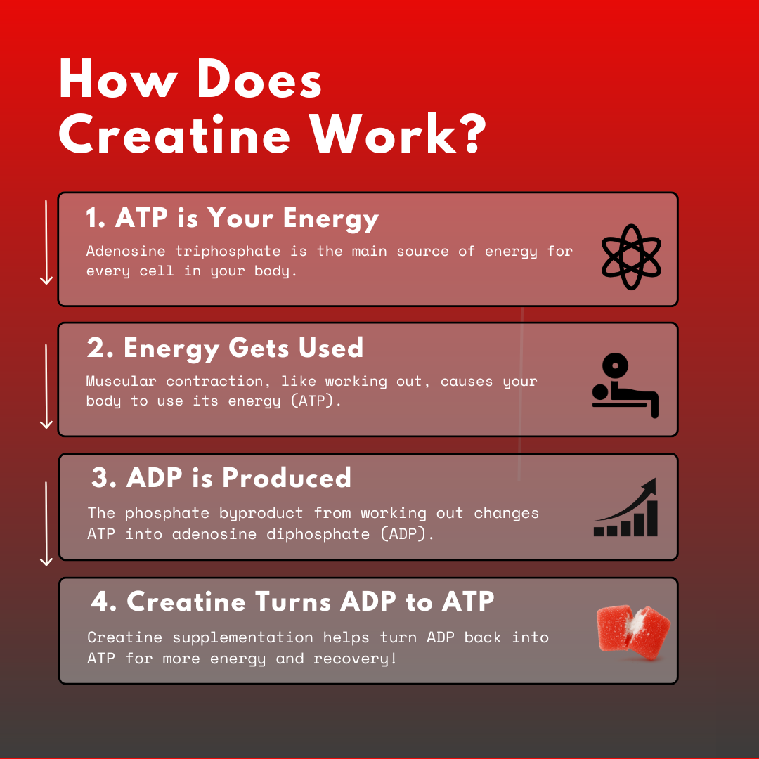 Creatine rebuilds ATP so you lift heavier and push more reps.