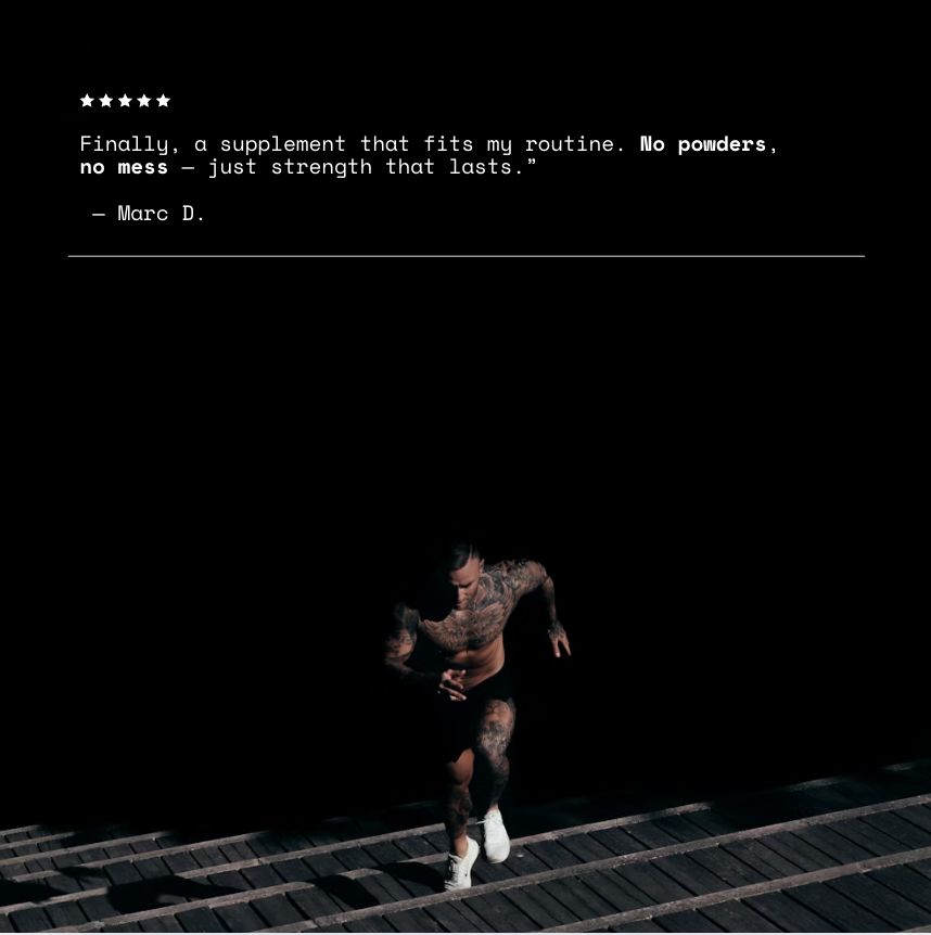 Keep a pack in your bag or desk and take them whenever it fits before a lift, between meetings, or on the commute. No water, no juggling products just consistent performance you’ll actually remember to take.